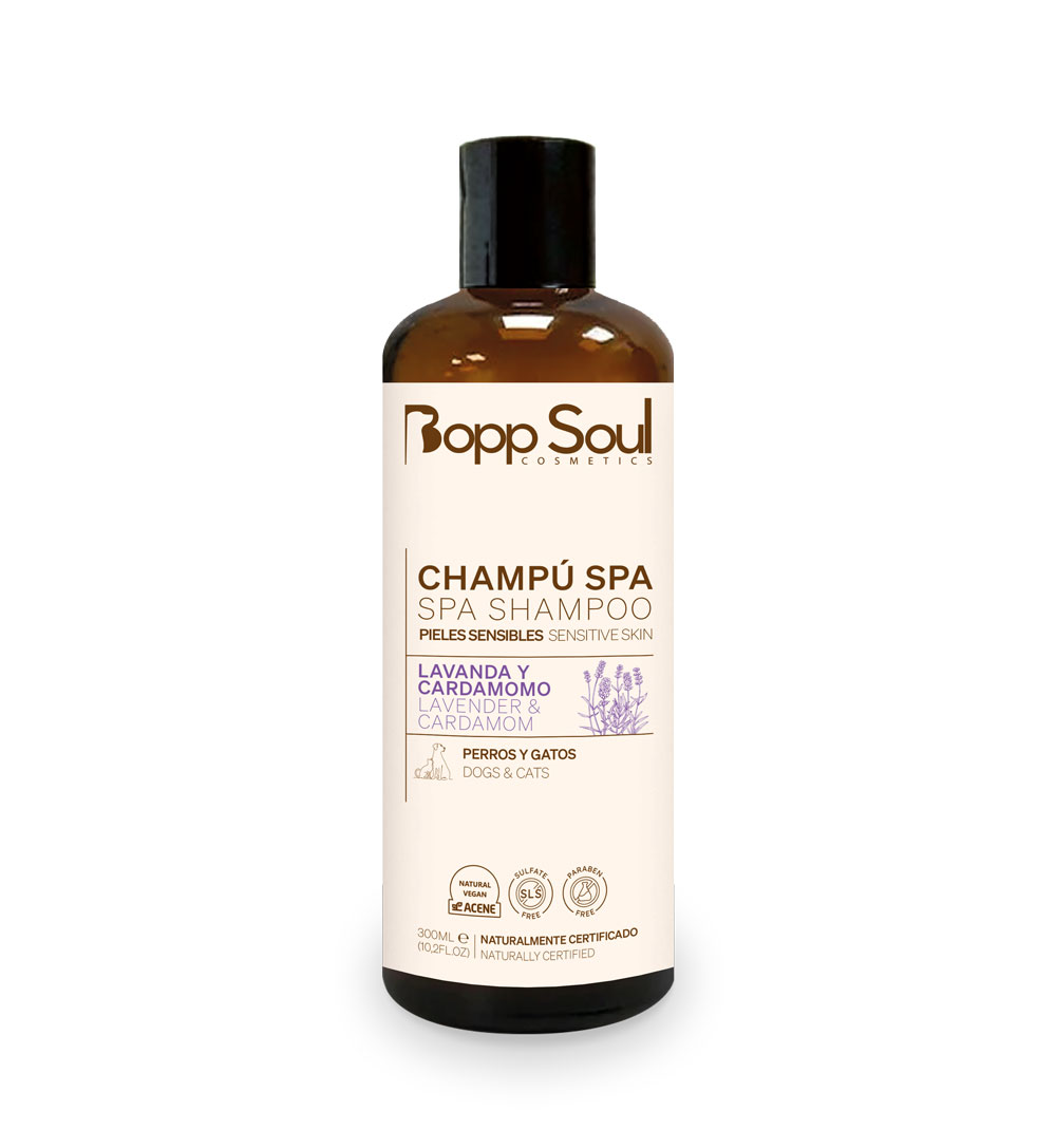 Modo de empleo: Humedece el pelaje, aplica el champú Bopp Soul y masajea suavemente; añade un poco de agua para activar su espuma natural y aclara con abundante agua hasta dejar su manto limpio, suave y sin residuos.